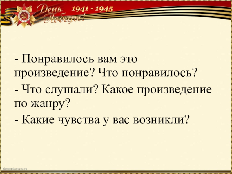 Слайд 13- Понравилось вам это произведение? Что понравилось?