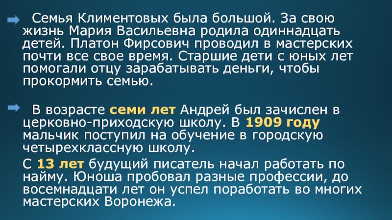 Слайд 5 Семья Климентовых была большой. За свою жизнь Мария Васильевна