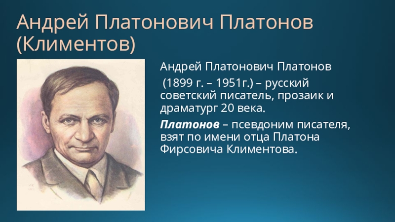 Слайд 3Андрей Платонович Платонов (Климентов)