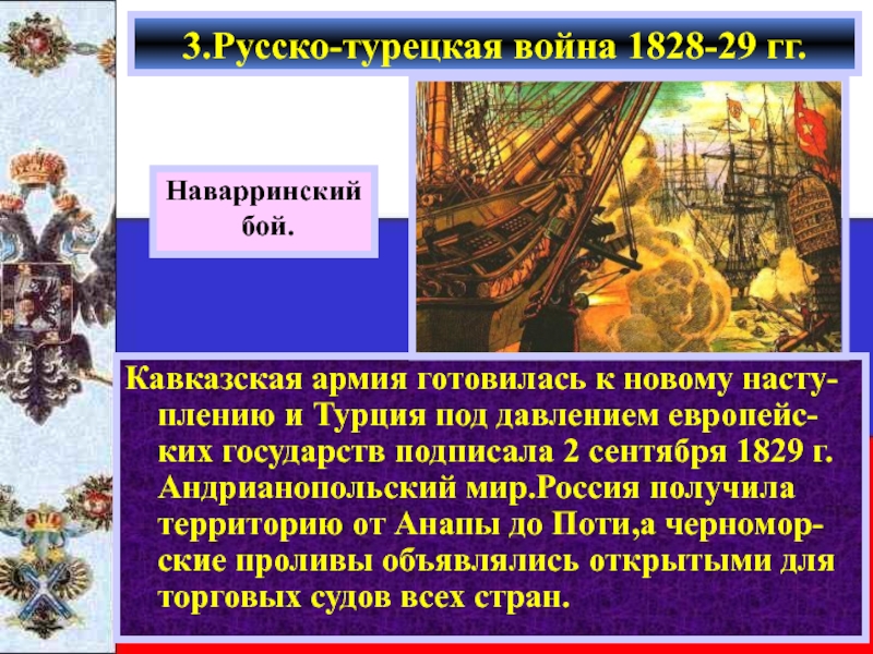 В 1839-41 гг.Англии удалось заключить ряд догово-ров с Турцией, и гарантом ее безопасности стали европейские страны.Влияние России ослабло.