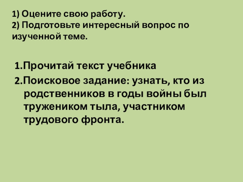Если не удалось найти и скачать доклад-презентацию, Вы можете заказать его на нашем сайте. Мы постараемся найти нужный Вам материал и отправим по электронной почте. Не стесняйтесь обращаться к нам, если у вас возникли вопросы или пожелания: