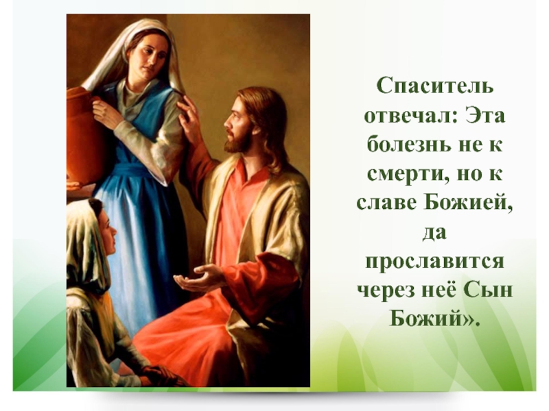 Слайд 4Спаситель отвечал: Эта болезнь не к смерти, но к славе
