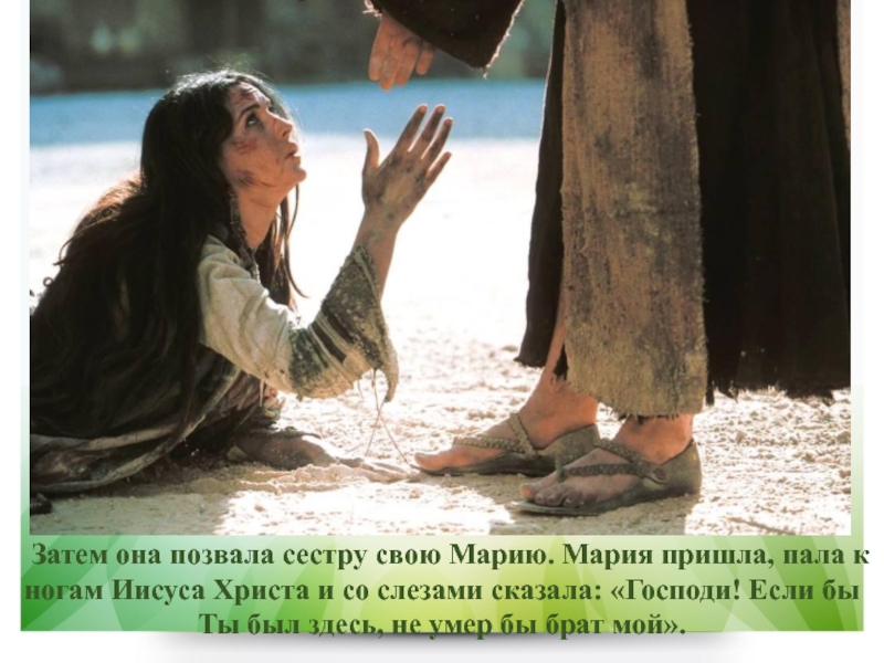 Слайд 9Затем она позвала сестру свою Марию. Мария пришла, пала к