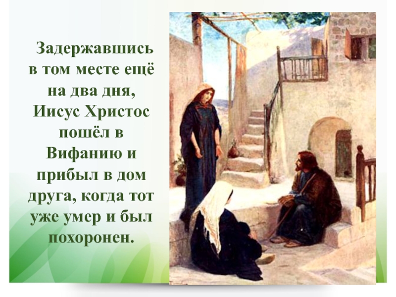 Слайд 5Задержавшись в том месте ещё на два дня, Иисус Христос