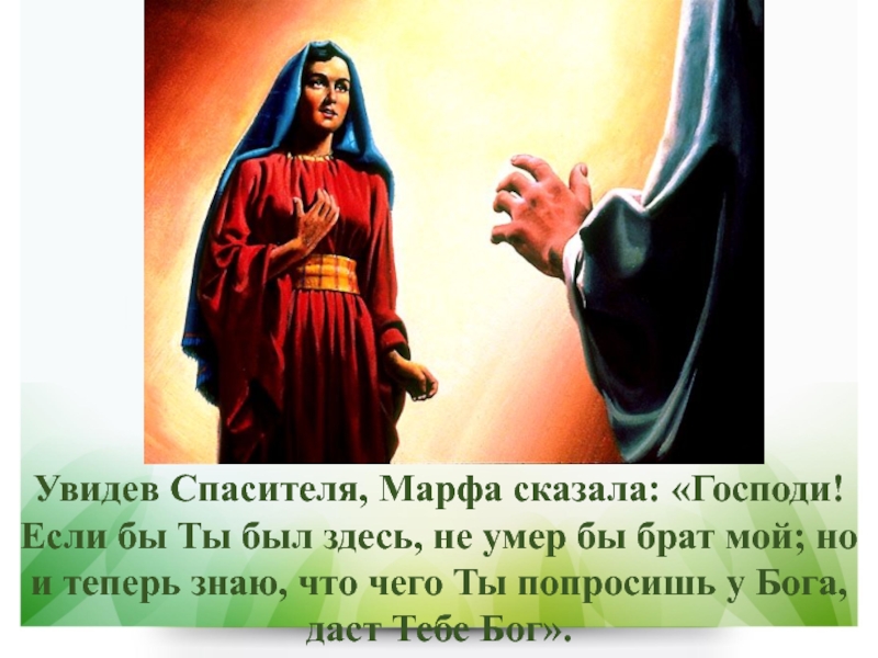 Слайд 6Увидев Спасителя, Марфа сказала: «Господи! Если бы Ты был здесь,