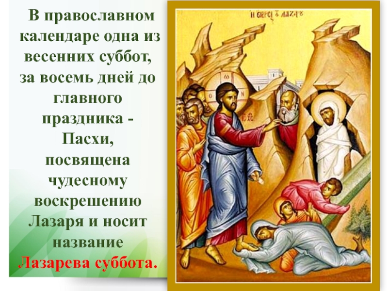 Слайд 15В православном календаре одна из весенних суббот, за восемь дней