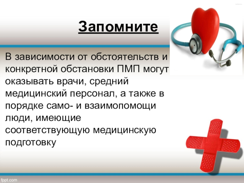 В зависимости от обстоятельств и конкретной обстановки ПМП могут оказывать