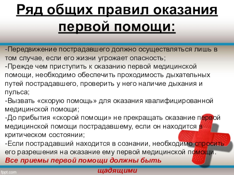 -Если пострадавший находится в сознании, необходимо спросить его разрешения на оказание ему первой медицинской помощи.