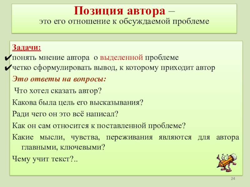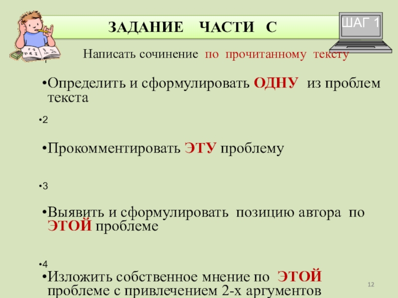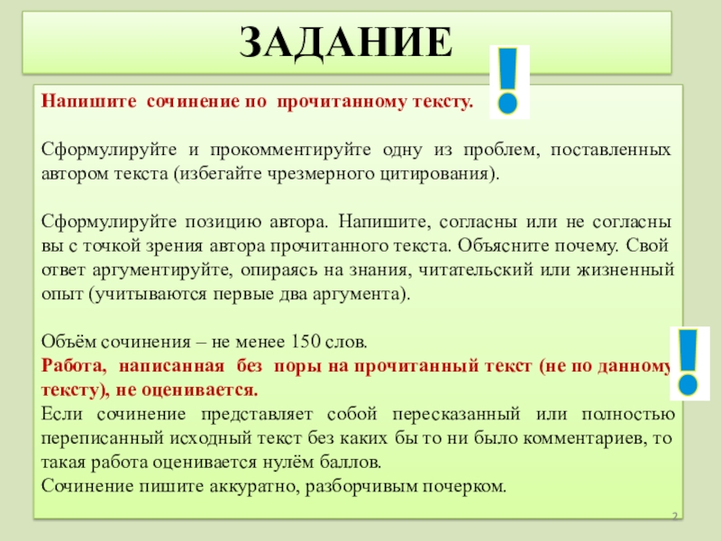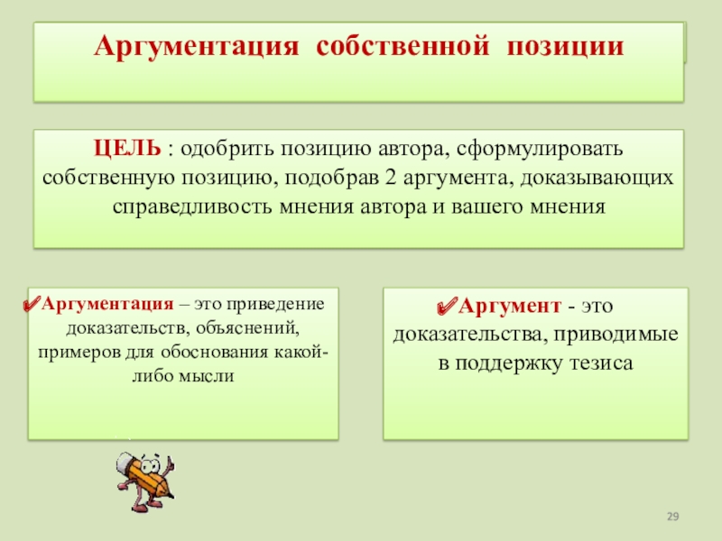 ЦЕЛЬ : одобрить позицию автора, сформулировать собственную позицию, подобрав 2 аргумента, доказывающих справедливость мнения автора и вашего мнения