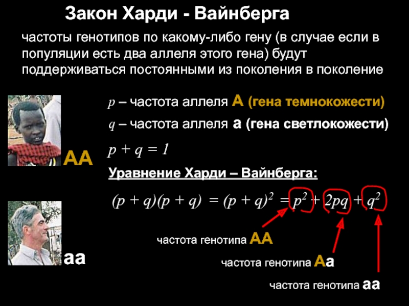 р – частота аллеля А (гена темнокожести)