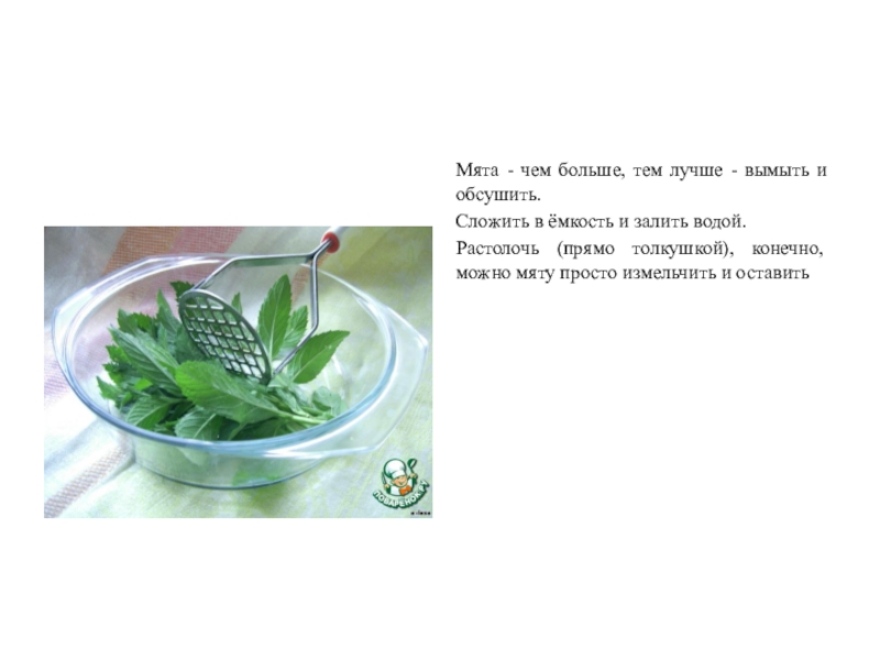 Слайд 8Мята - чем больше, тем лучше - вымыть и обсушить.