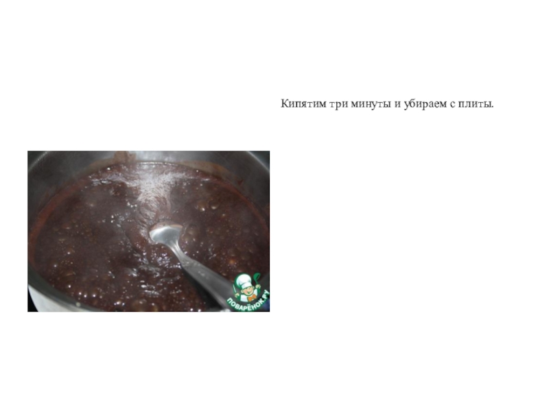 Слайд 5Кипятим три минуты и убираем с плиты.