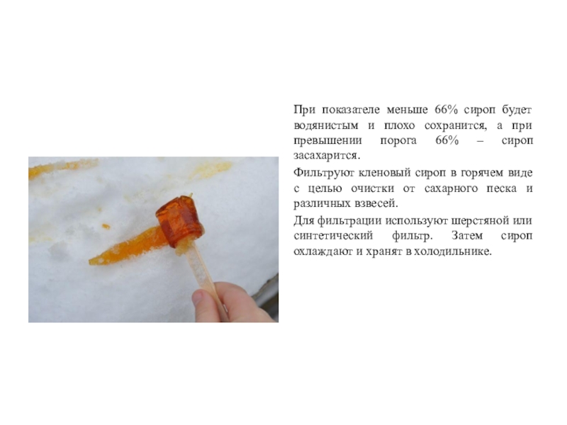 Слайд 20При показателе меньше 66% сироп будет водянистым и плохо сохранится,