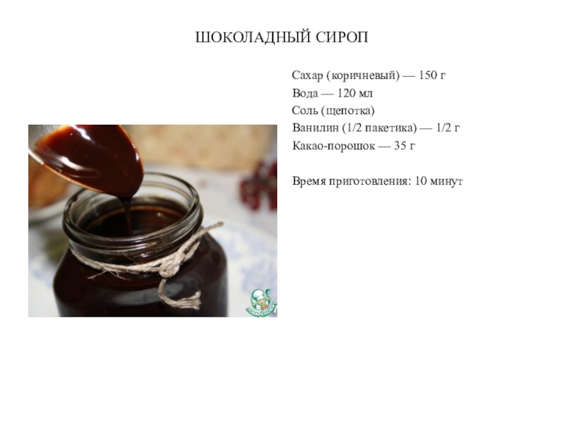 Слайд 2ШОКОЛАДНЫЙ СИРОП