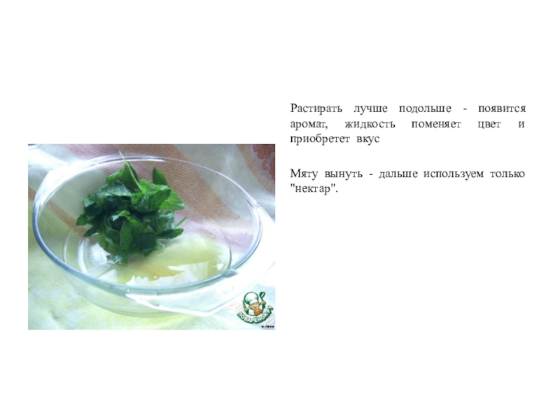 Слайд 9Растирать лучше подольше - появится аромат, жидкость поменяет цвет и