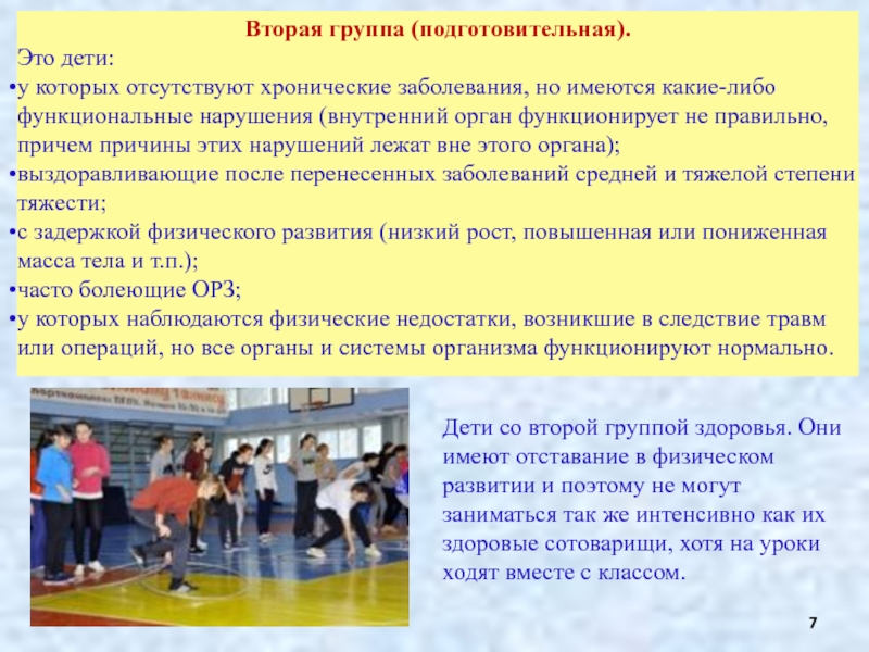 Дети с третьей группой здоровья. Те, у которых имеются существенные ограничения по физическим нагрузкам. Они не могут заниматься вместе с классом. Для таких детей в школах должны проводиться отдельные уроки по физкультуре и разрабатываться специальные программы. А занятия должны вести учителя или инструкторы, прошедшие специальную подготовку.