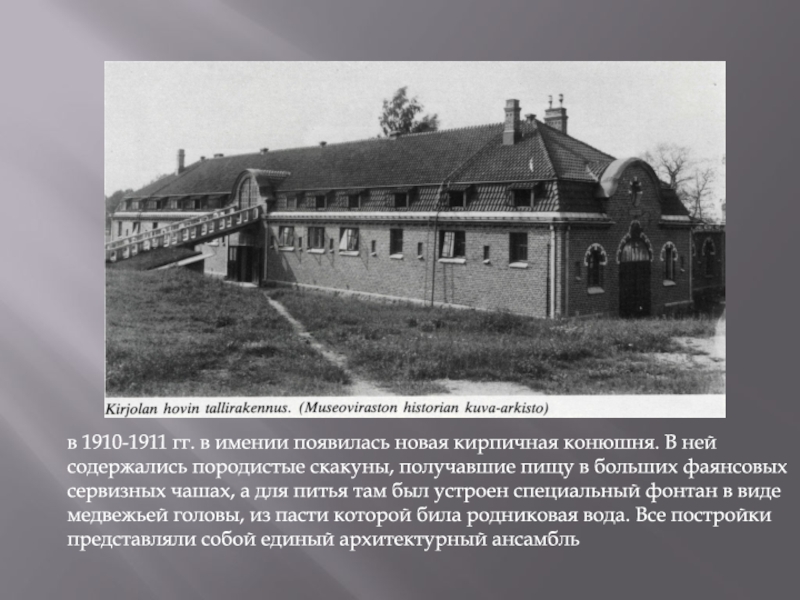 Слайд 11в 1910-1911 гг. в имении появилась новая кирпичная конюшня. В