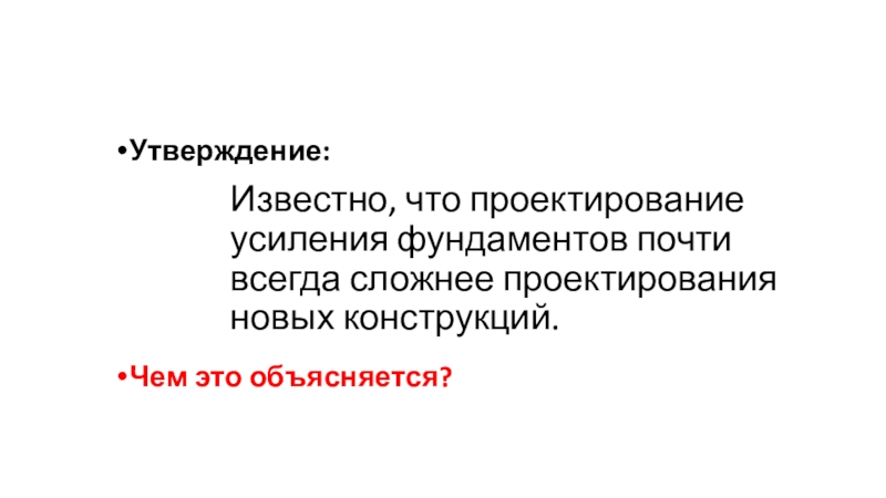 Слайд 5Известно, что проектирование усиления фундаментов почти всегда сложнее проектирования новых