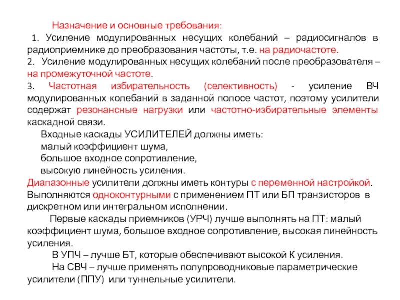 1. Усиление модулированных несущих колебаний – радиосигналов в радиоприемнике до