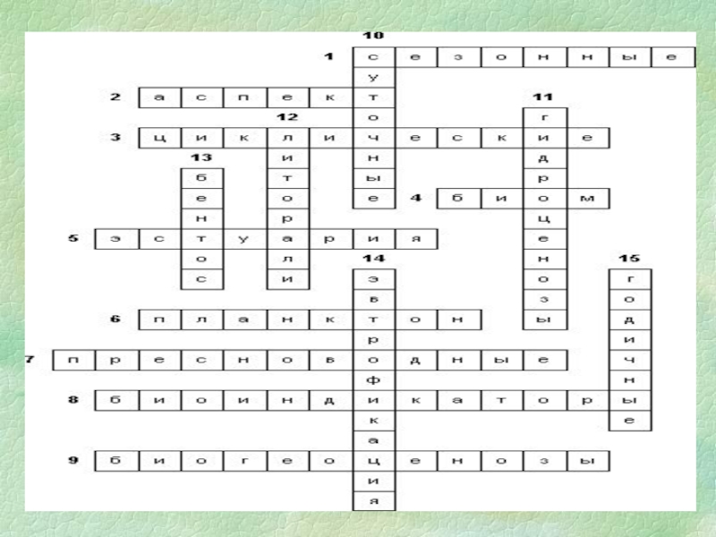 Слайд 5810. Изменения в биогеоценозах, характеризующиеся суточным ритмом активности процессов жизнедеятельности