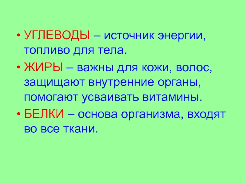 Слайд 15УГЛЕВОДЫ – источник энергии, топливо для тела.