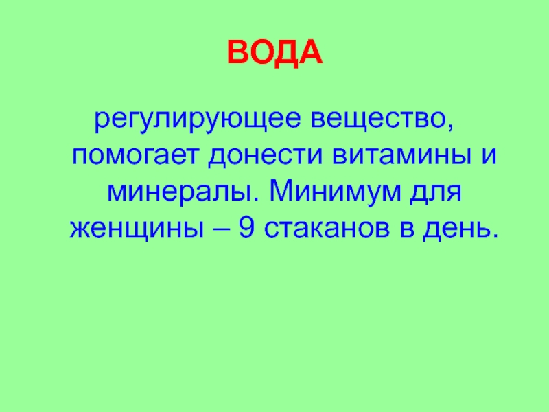 регулирующее вещество, помогает донести витамины и минералы. Минимум для женщины