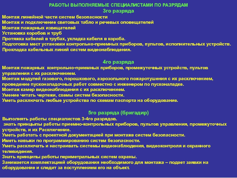 Слайд 50РАБОТЫ ВЫПОЛНЯЕМЫЕ СПЕЦИАЛИСТАМИ ПО РАЗРЯДАМ