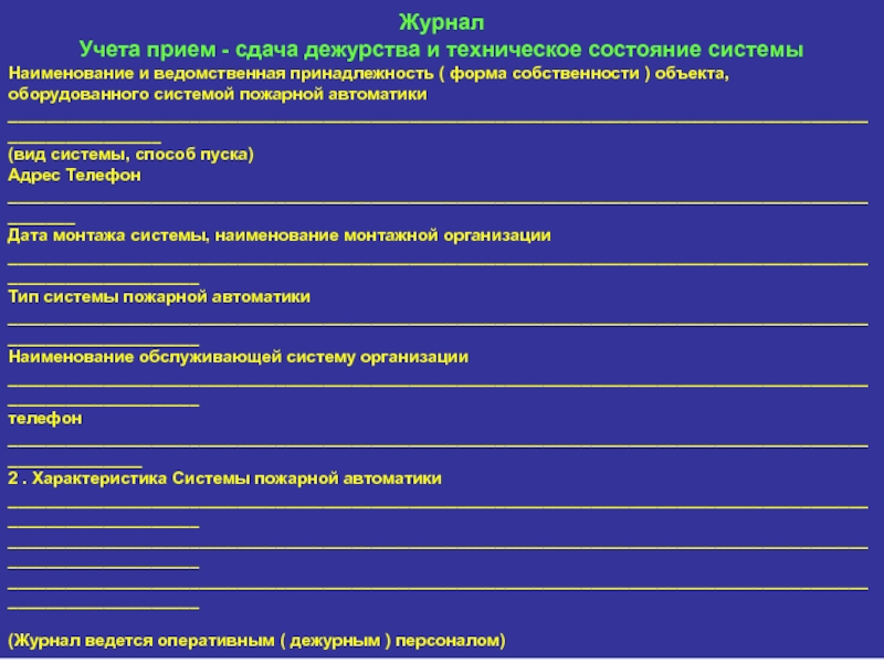 м) журнал сдачи- приемки дежурства оперативным персоналом;