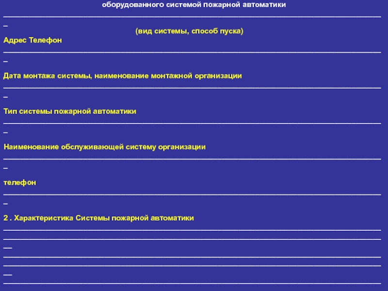 - представить комиссии эксплуатационные документы на установку пожарной автоматики, проект (акт обследования), комплект приемо-сдаточных документов в соответствии с действующими строительными нормами на монтаж;