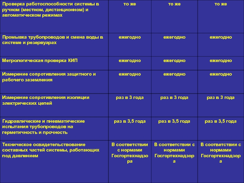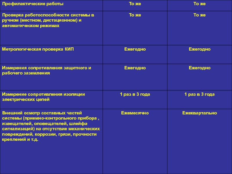 ТО и ППР, а также по содержанию установок пожарной автоматики