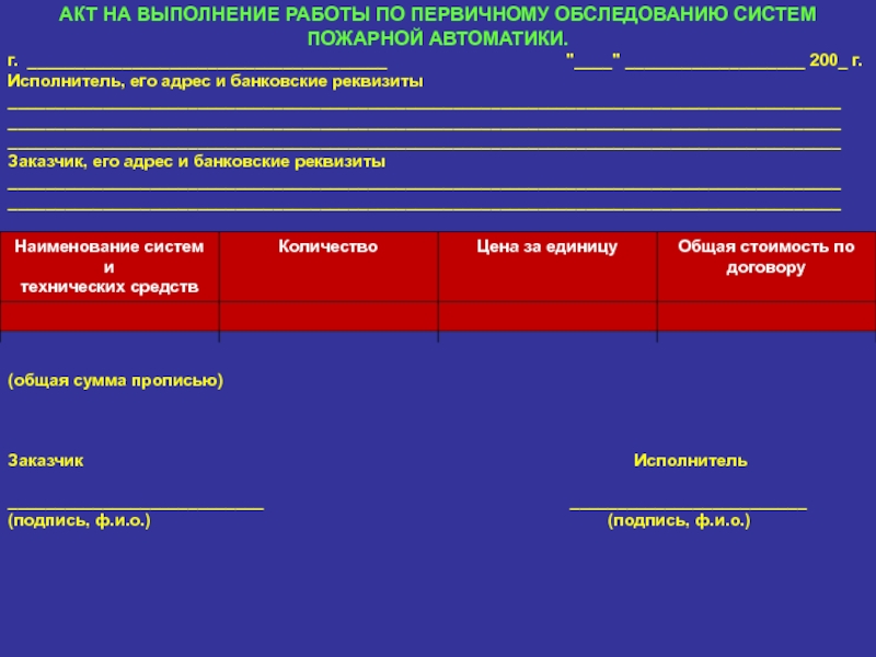 2.7 По результатам обследования составляется акт первичного обследования систем пожарной автоматики и Акт на выполнение работы при первичном обследовании (приложение 1, формы 0.1).