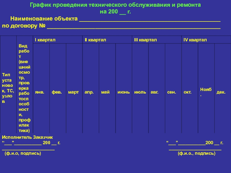 - приемку работ по ТО и ППР в соответствии с графиком и календарным планом работ по договору;