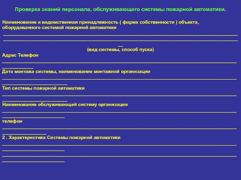 Персонал, показавший неудовлетворительные результаты на зачете, к обслуживанию установок пожарной автоматики не допускается.