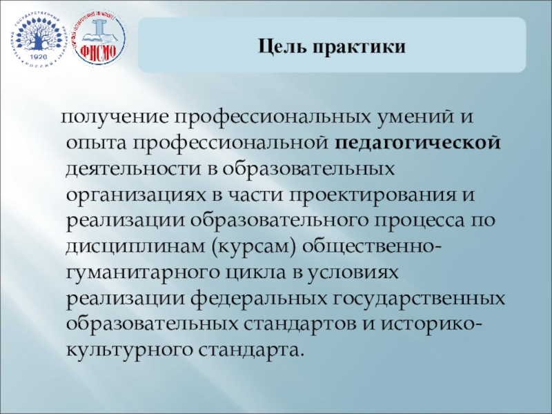 получение профессиональных умений и опыта профессиональной педагогической деятельности в
