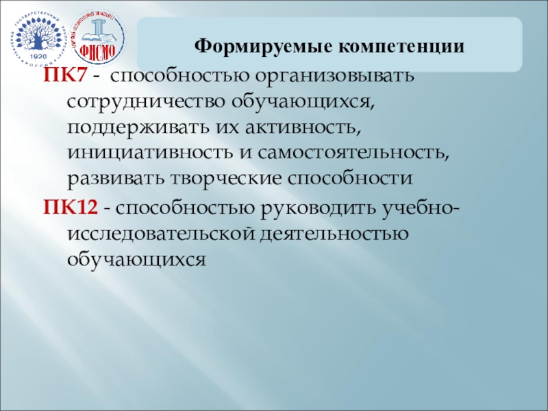 ПК7 - способностью организовывать сотрудничество обучающихся, поддерживать их активность,