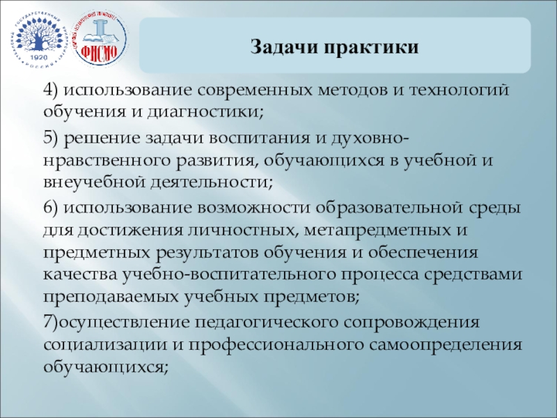 6) обращаться за консультацией к факультетскому, групповому руководителям практики, а так же, к преподавателям, курирующим психолого-педагогический модуль.