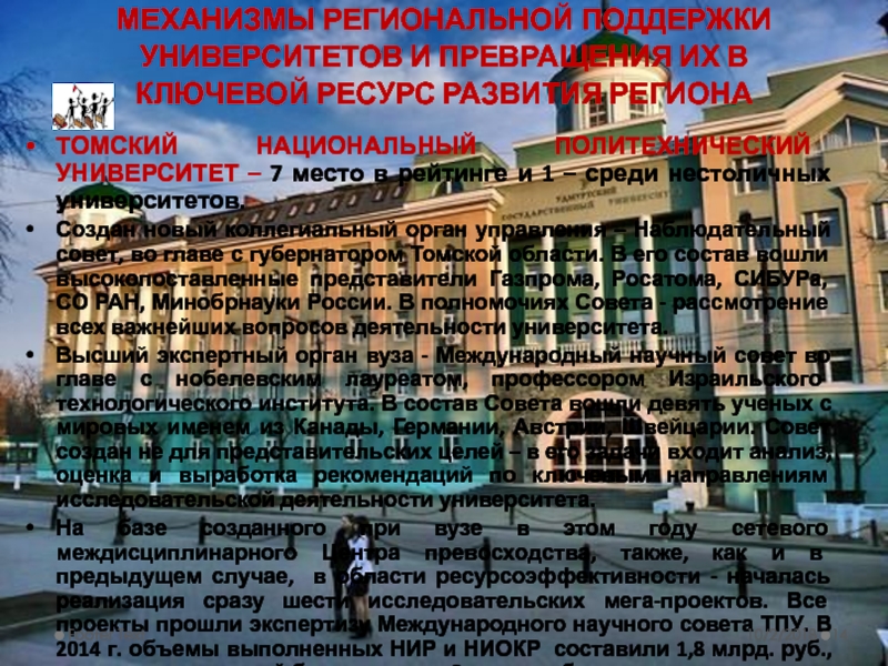 Примеры деятельности победителей конкурса, включенных в список НИУ: