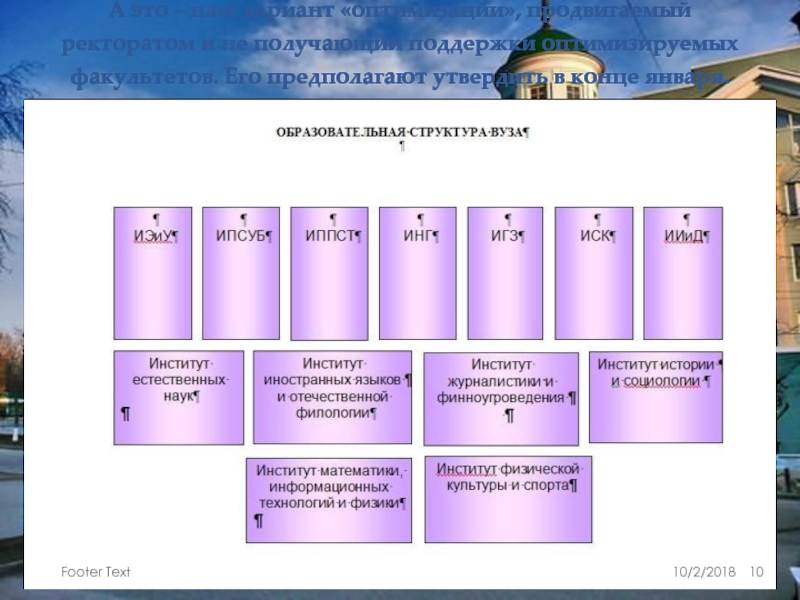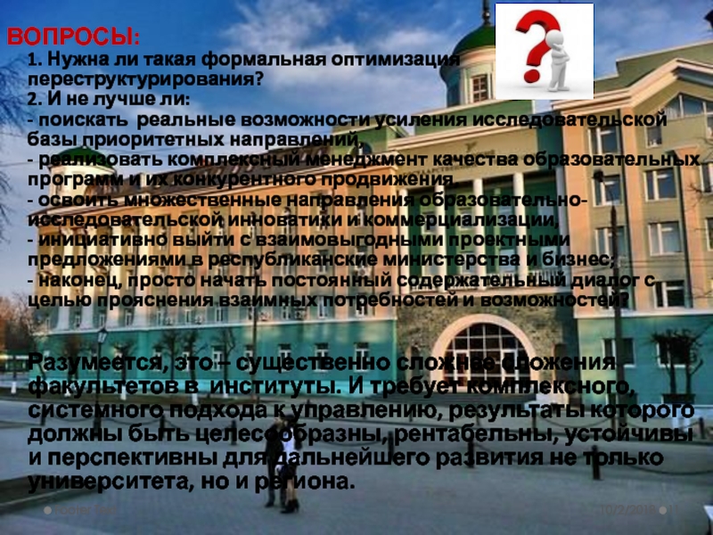 После обсуждения – проголосовать за целесообразность /нецелесообразность слияния факультетов в институты, с утратой факультетских брендов. (Простое большинство – отразить в презентации).