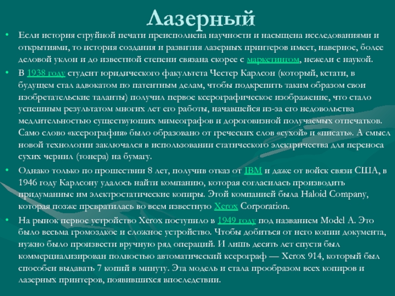 открытиями, то история создания и развития лазерных принтеров имеет, наверное,