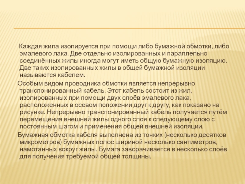 Слайд 9 Каждая жила изолируется при помощи либо бумажной