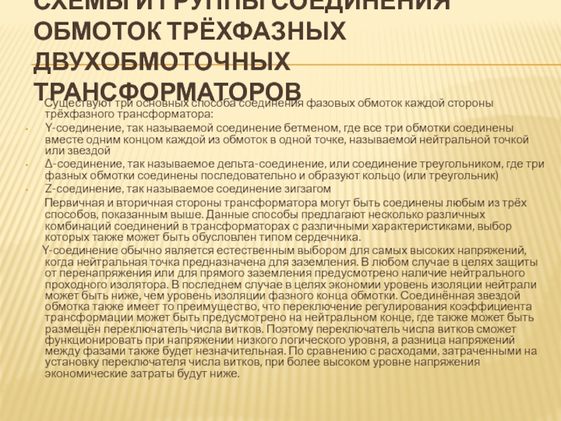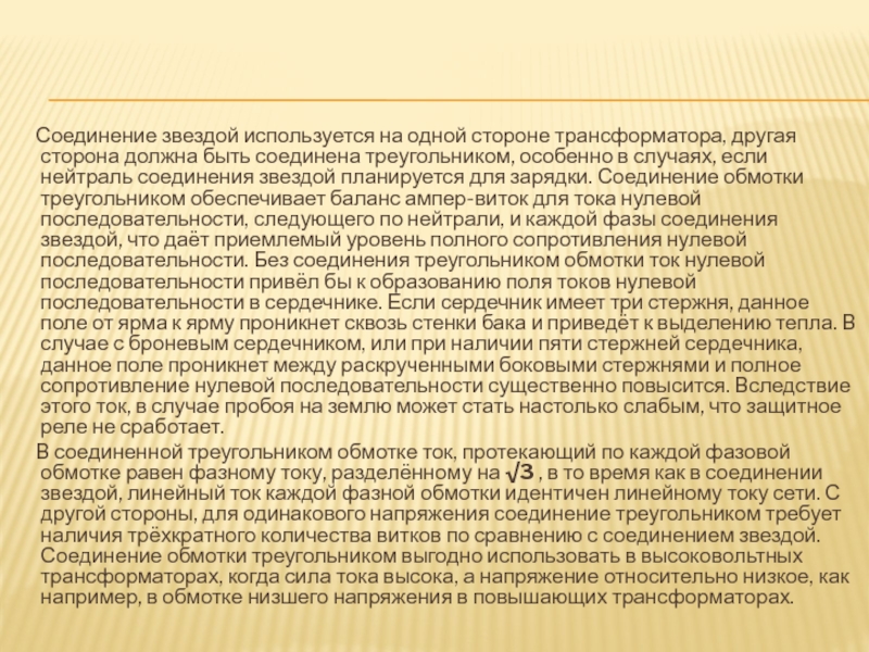 Слайд 13 Соединение звездой используется на одной стороне трансформатора,