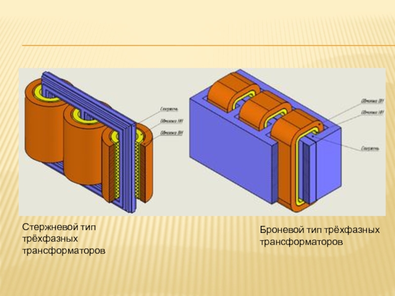Слайд 5Стержневой тип трёхфазных трансформаторов