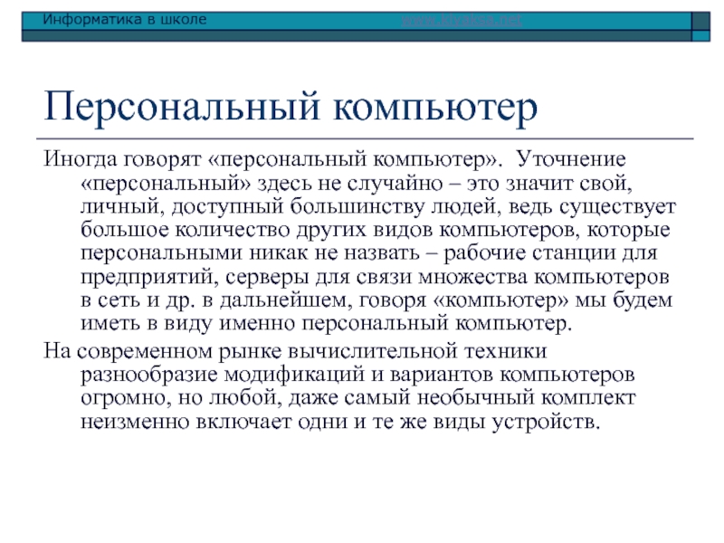 Иногда говорят «персональный компьютер». Уточнение «персональный» здесь не
