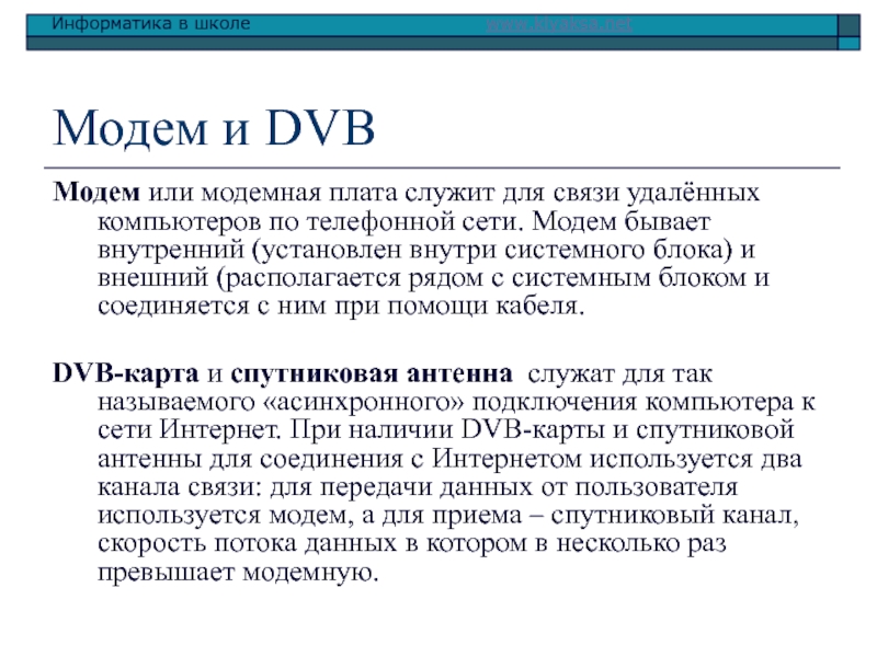 Слайд 11Модем и DVB