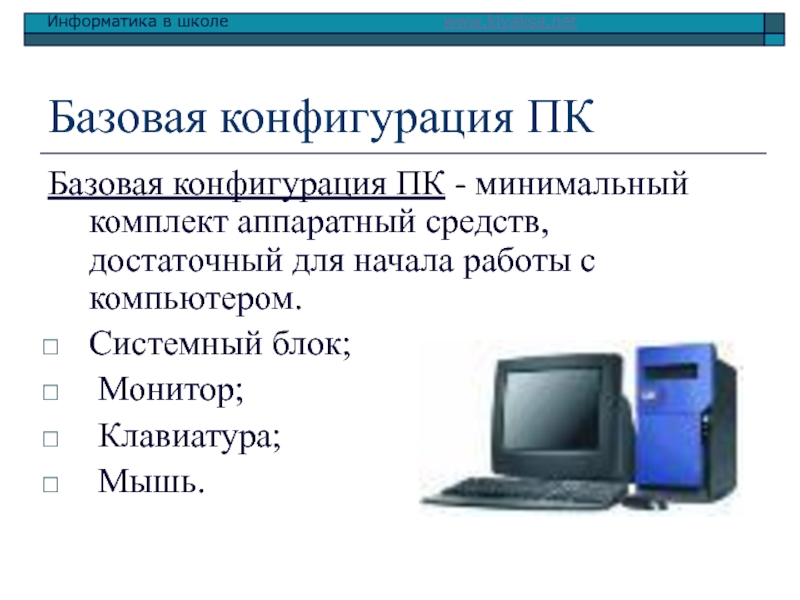 Слайд 3Базовая конфигурация ПК
