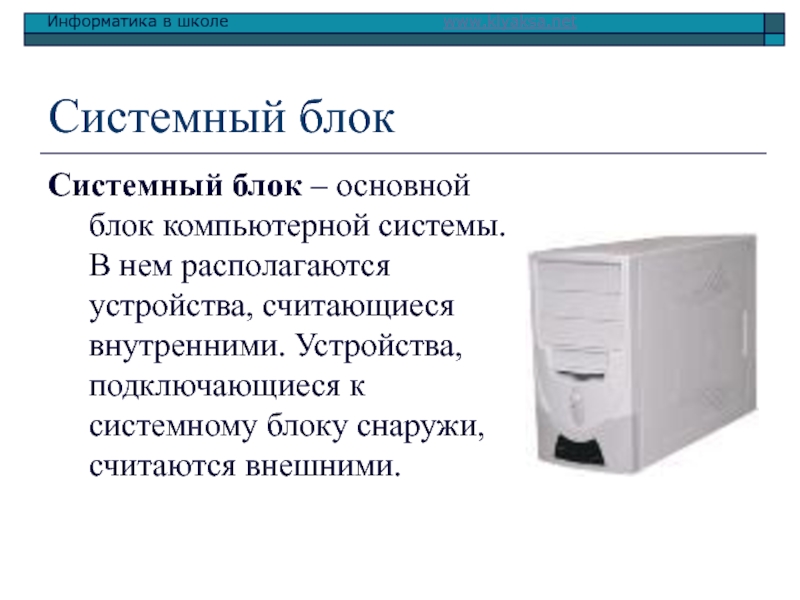 Системный блок – основной блок компьютерной системы. В нем