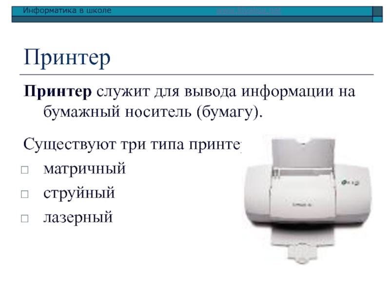 Принтер служит для вывода информации на бумажный носитель (бумагу).