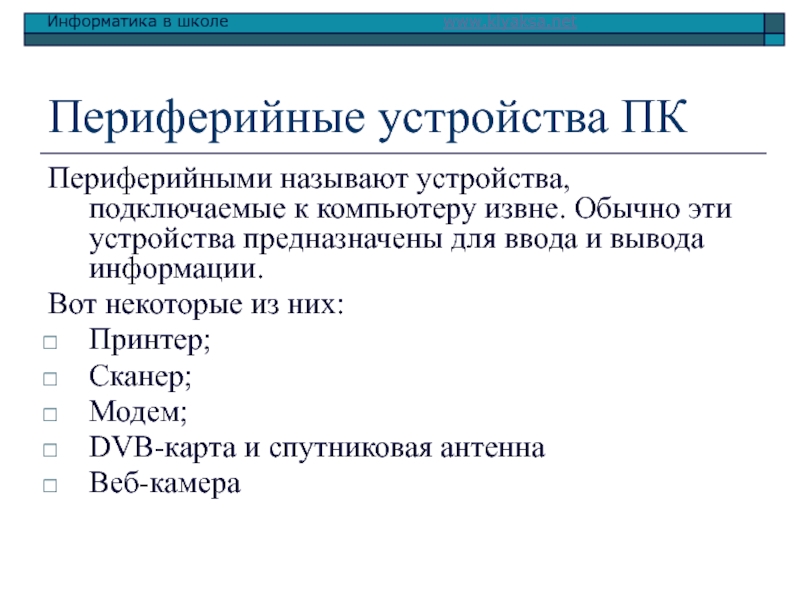 Периферийными называют устройства, подключаемые к компьютеру извне. Обычно