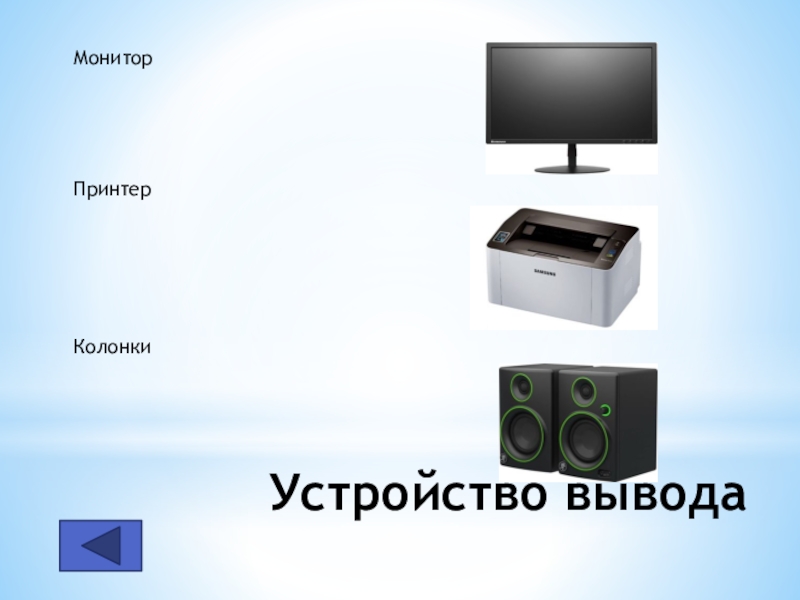 Устройство выводаМонитор Принтер Колонки