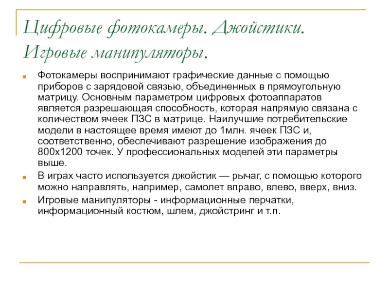 Слайд 50Цифровые фотокамеры. Джойстики.